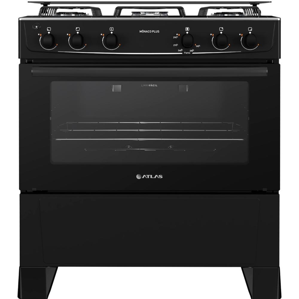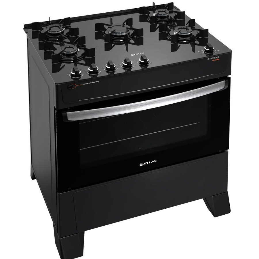 1. Fogão Atlas 5 Bocas Preto Atenas Glass