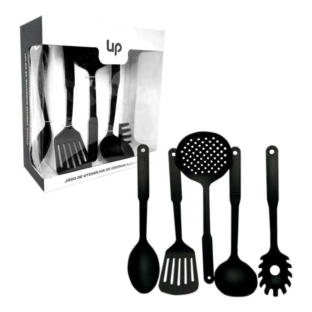 Se você está começando a montar sua cozinha ou busca um conjunto básico e funcional, este kit é uma ótima opção. Ele inclui uma espátula, colher, concha, escumadeira e pegador de massa, todos feitos de nylon seguro para uso em panelas antiaderentes.