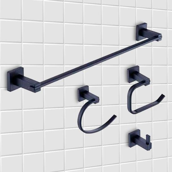 6. Kit Acessórios para Banheiro Preto Fosco 4 Peças ELG